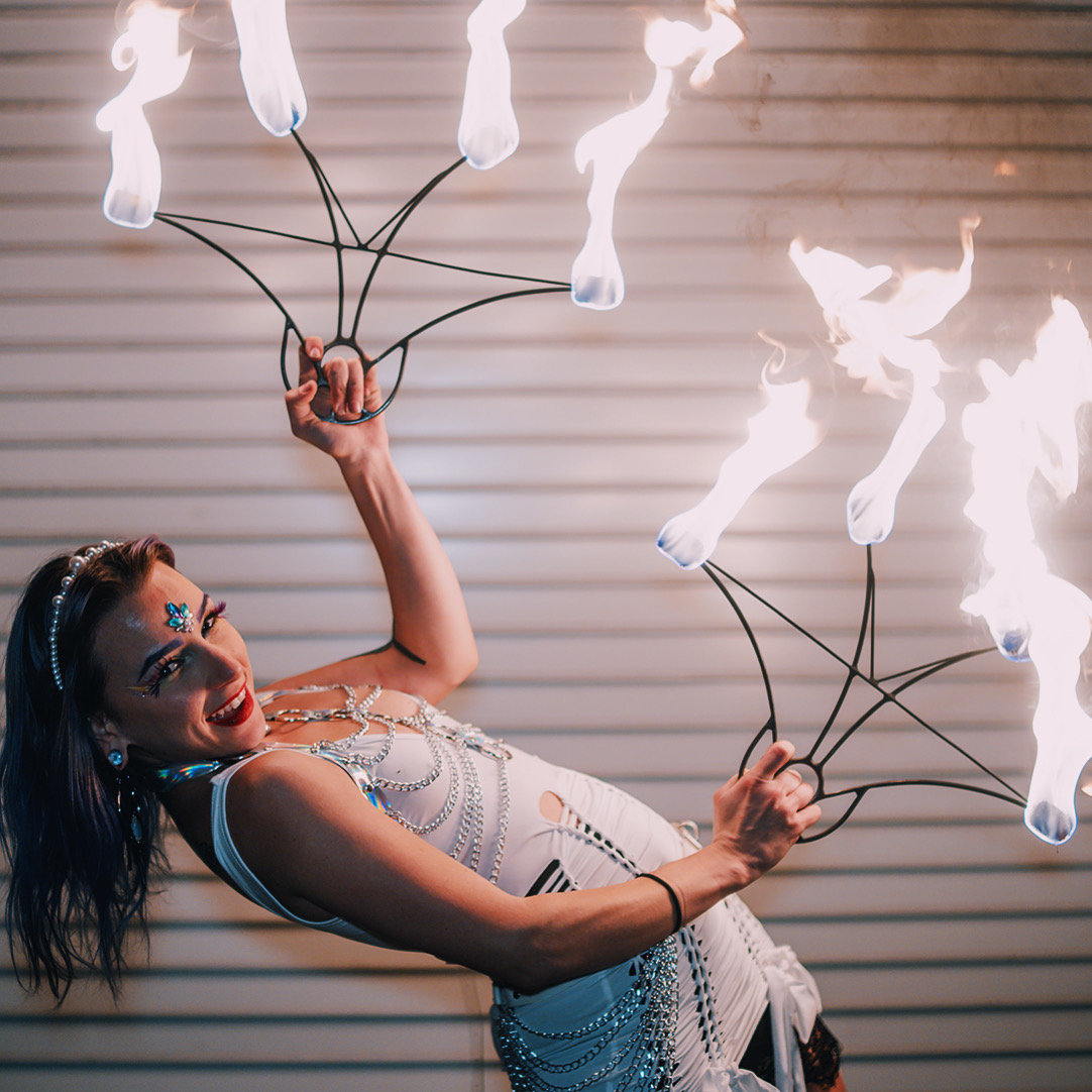 With over 10 years of show experience, Pyro Priestess is passionate, dedicated, and ready to take your event to the next level. She brings her own unique aesthetic and good energy to every performance, making sure your event is truly unforgettable.
