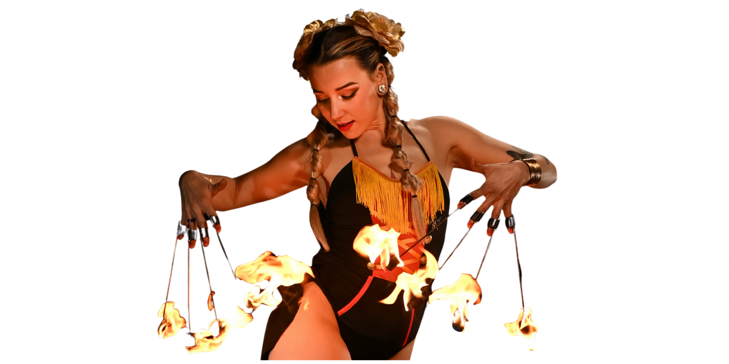 The Best Selling Show for a reason! It’s a truly mesmorizing spectable sure to leave your guests amazed! Pyro Priestess is most known for keeping the show exciting with the variety of skillfully performing a plethora of props including fans, staffs. hoops, and specialty props never seen before!